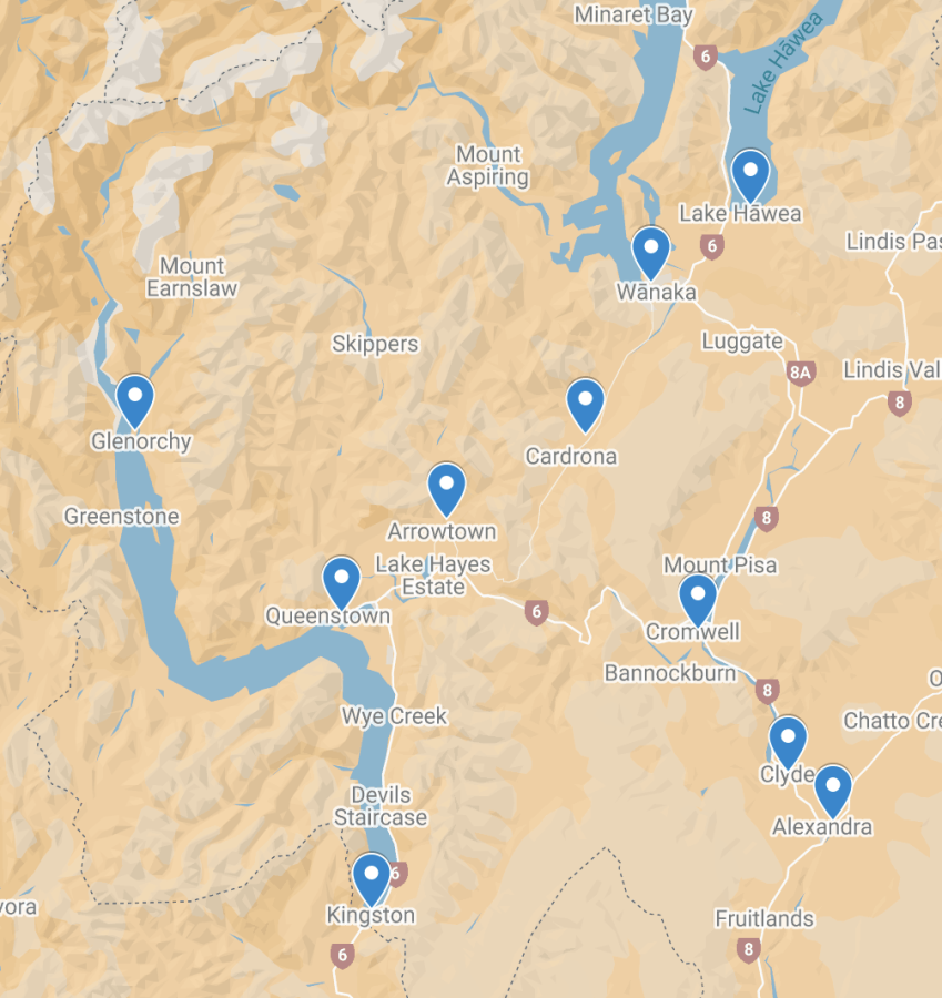 Areas covered: Queenstown, Kingston, Glenorchy, Arrowtown, Gibbston, Cromwell, Clyde, Alexandra, Wanaka, Lumsden, Tarras and everywhere in-between!